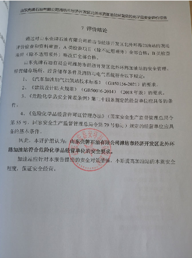 项目名称 | 山东壳牌石油有限公司潍坊市经济开发区北外环路加油站经营危险化学品 | ||