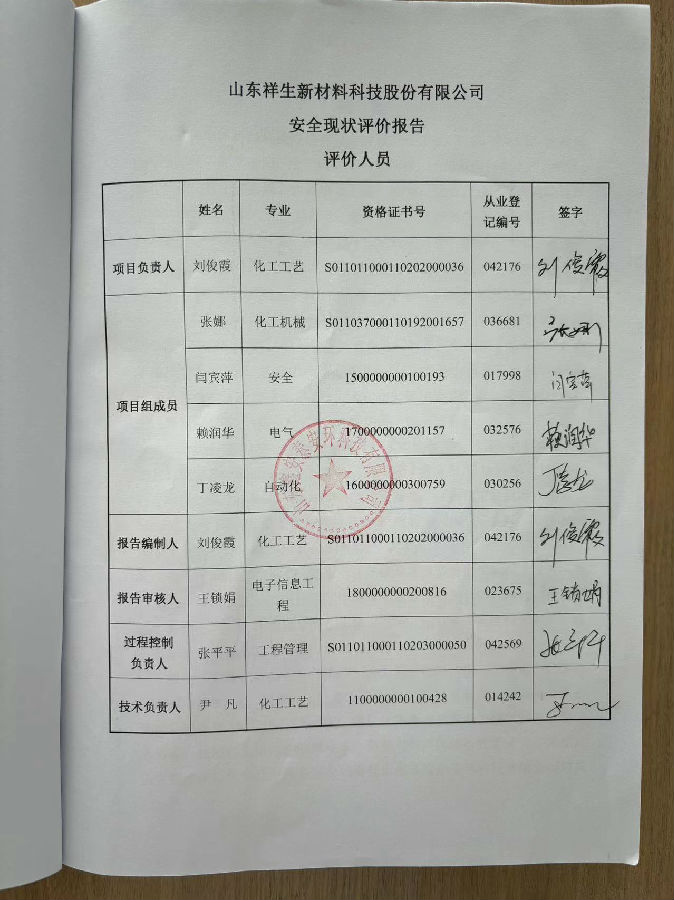 项目名称 | 山东祥生新材料科技股份有限公司安全现状评价 | 所属行业 | 危险化学品使用 |