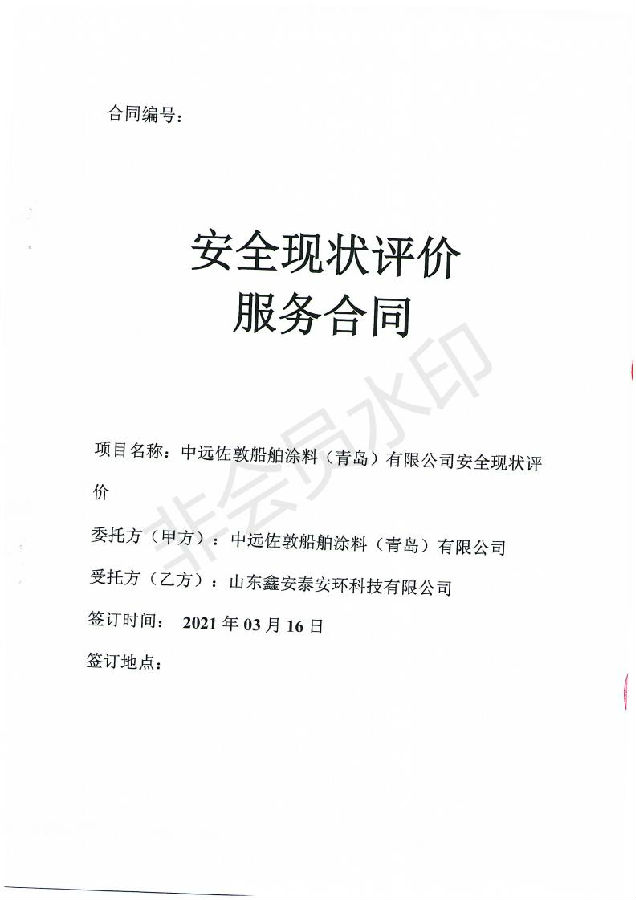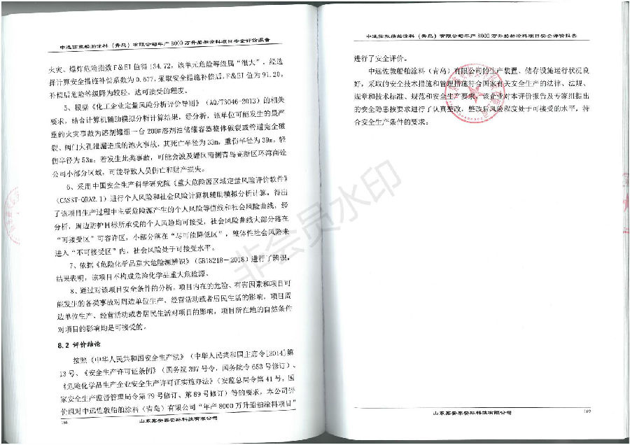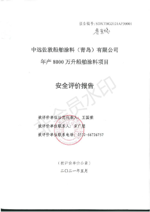 项目名称 | 中远佐敦船舶涂料(青岛)有限公司年产8000万升船舶涂料项目安全评价报告 | ||