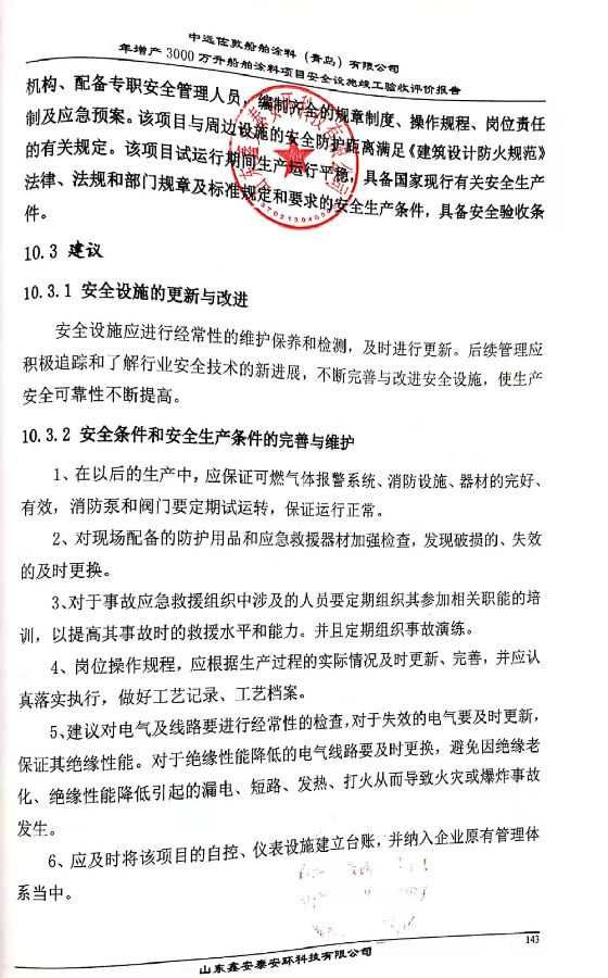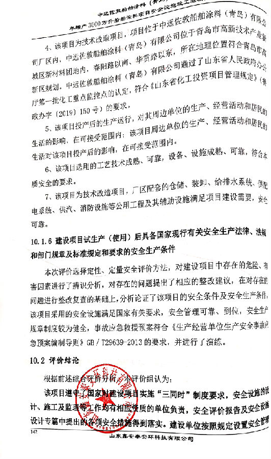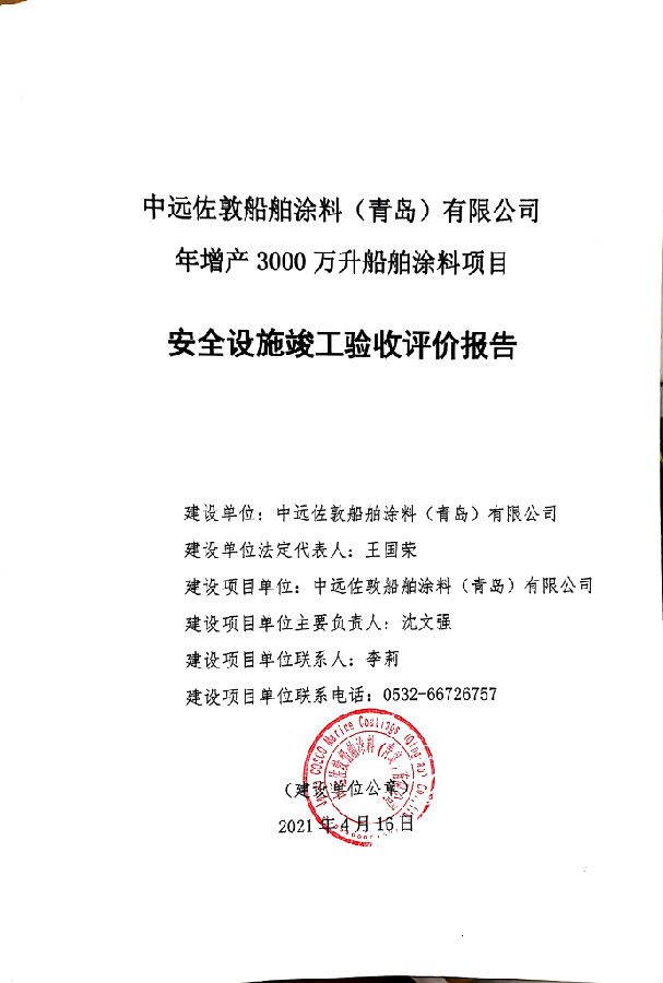项目单位:中远佐敦船舶涂料(青岛)有限公司 | |||
