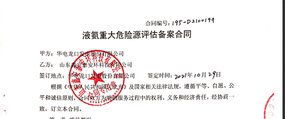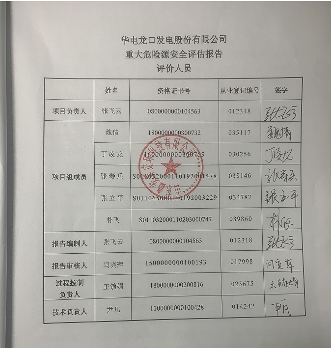 项目名称 | 华电龙口发电股份有限公司重大危险源安全评估报告 | ||