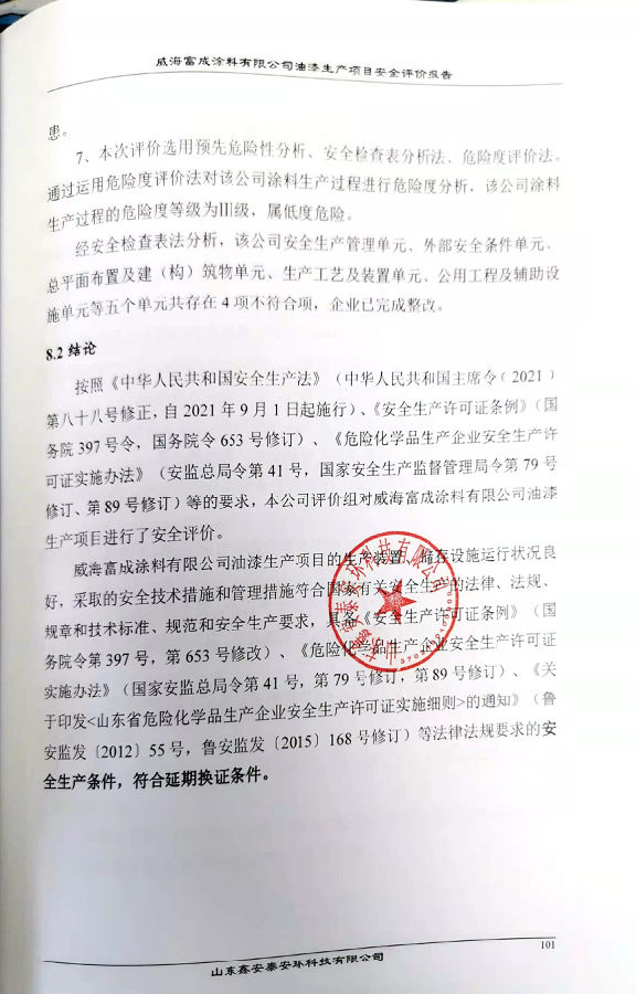 项目名称 | 威海富成涂料有限公司油漆生产项目安全评价报告 | ||