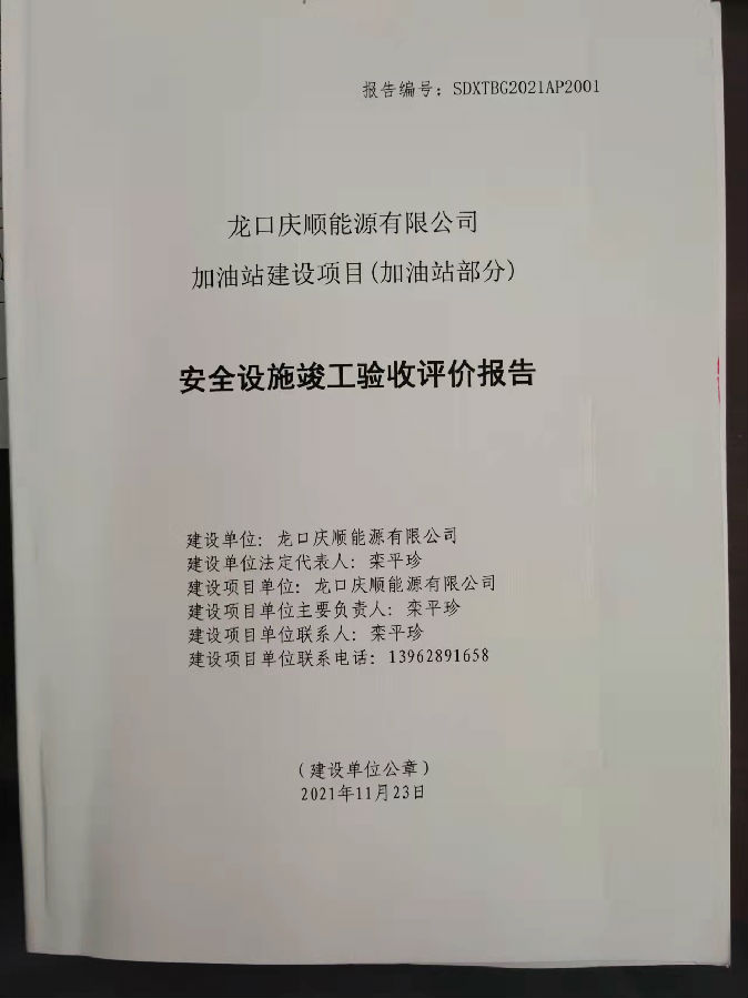 项目名称 | 烟台庆林石化销售有限责任公司开发区分公司加油站改造项目安全验收评价报告 | ||