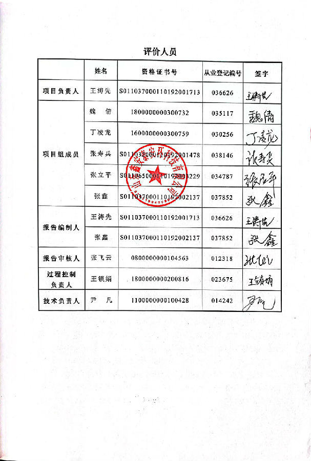 评价组成员 | 王涛先、魏倩、丁凌龙、张寿兵、张立平、张鑫 | ||