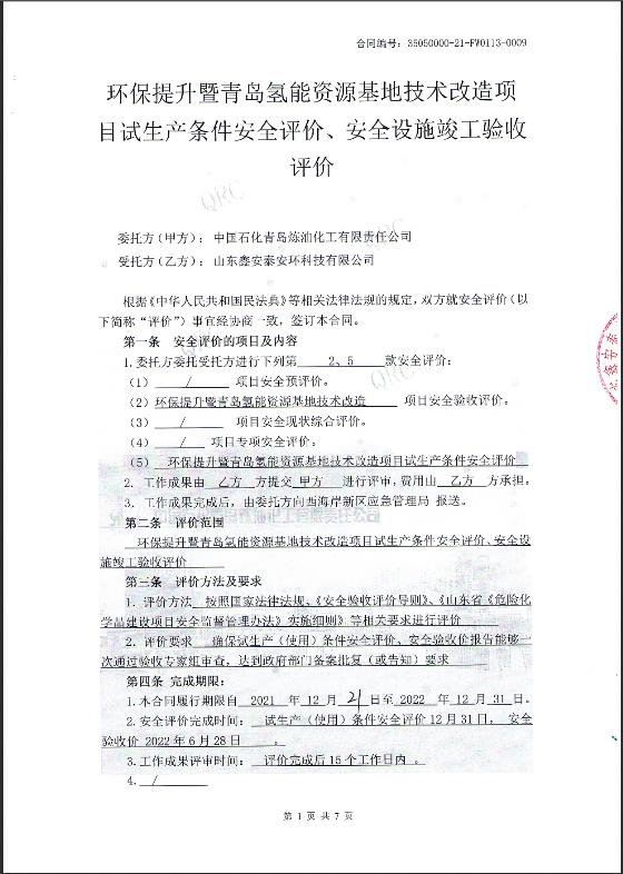 项目名称 | 中国石化青岛炼油化工有限责任公司氢能资源基地适应性改造项目安全评价报告 | ||