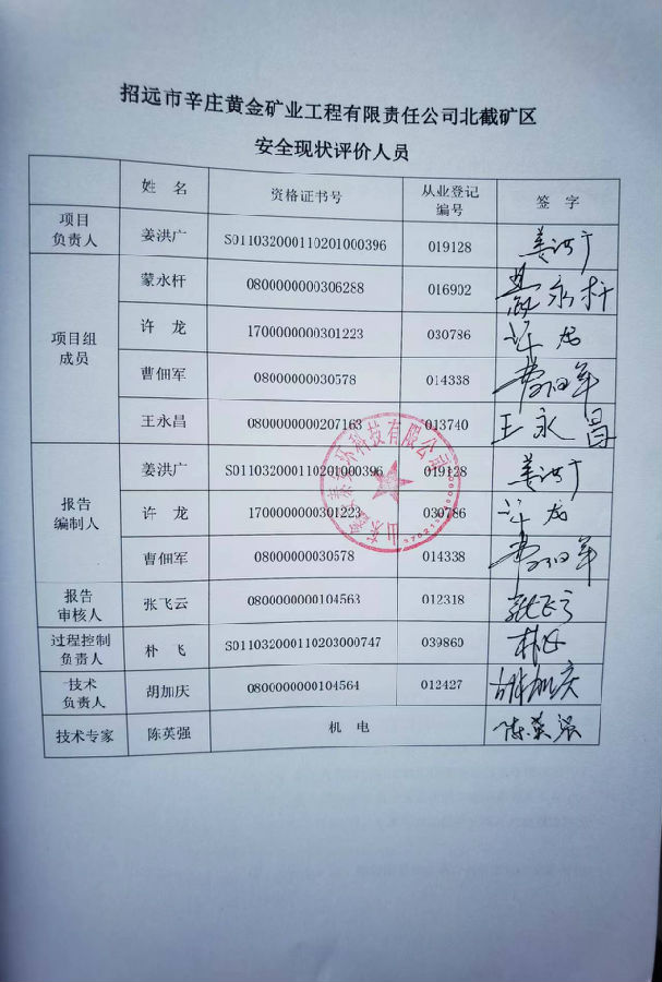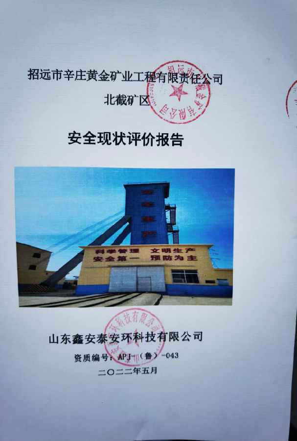 项目名称 | 招远市辛庄黄金矿业工程有限责任公司 北截矿区安全现状评价报告 | |||