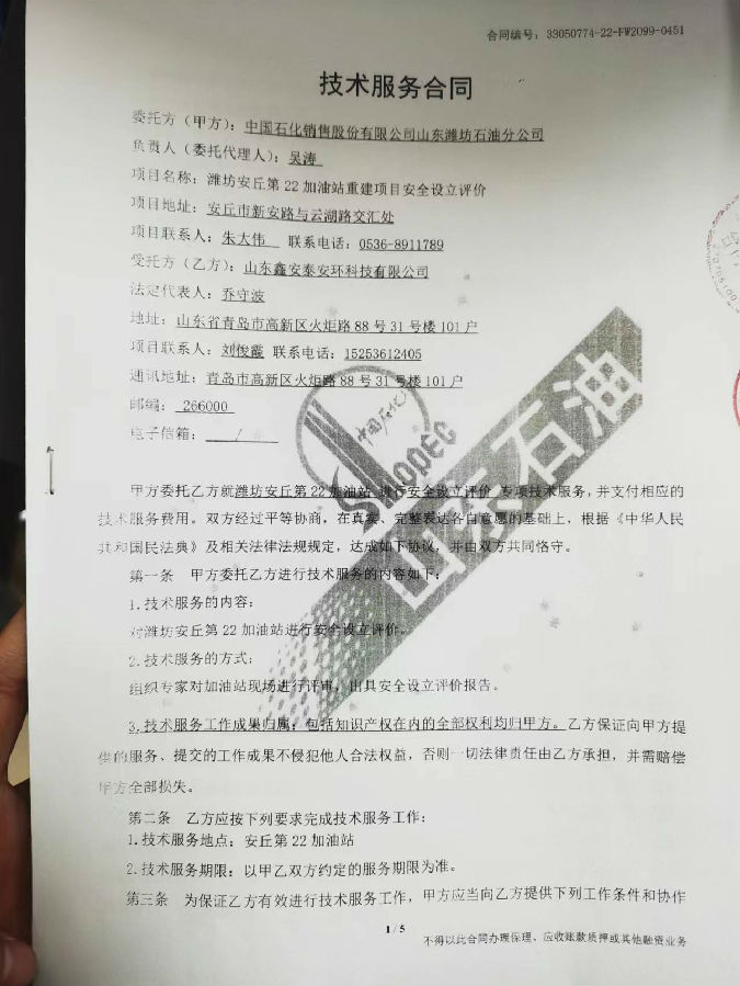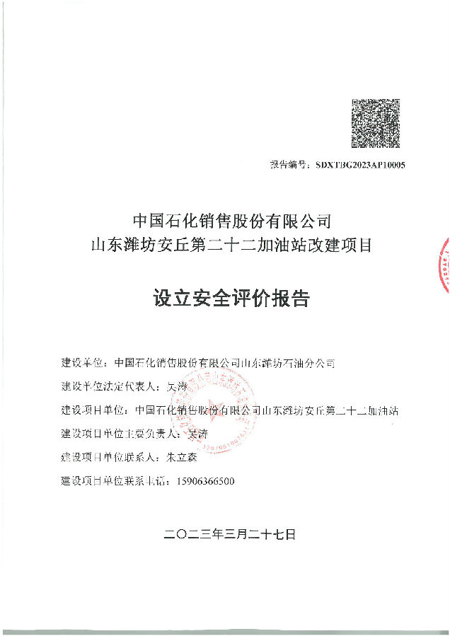 中国石化销售股份有限公司山东潍坊安丘第二十二加油站改建项目