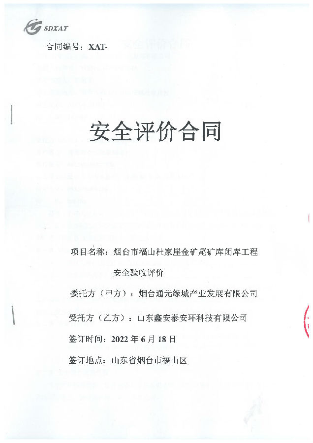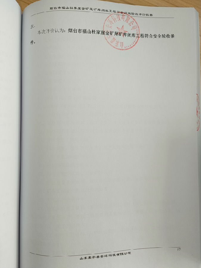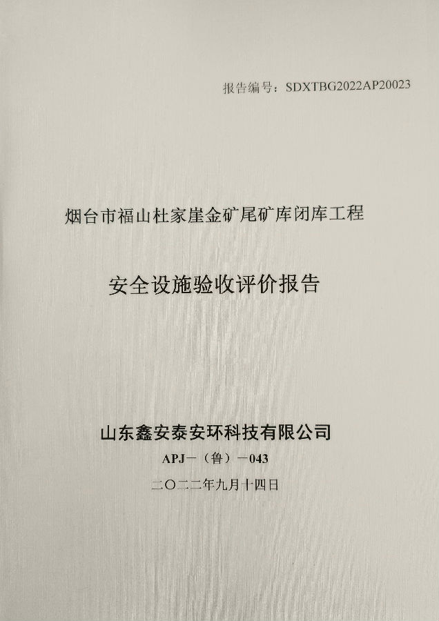 烟台市福山杜家崖金矿尾矿库闭库工程安全设施验收评价