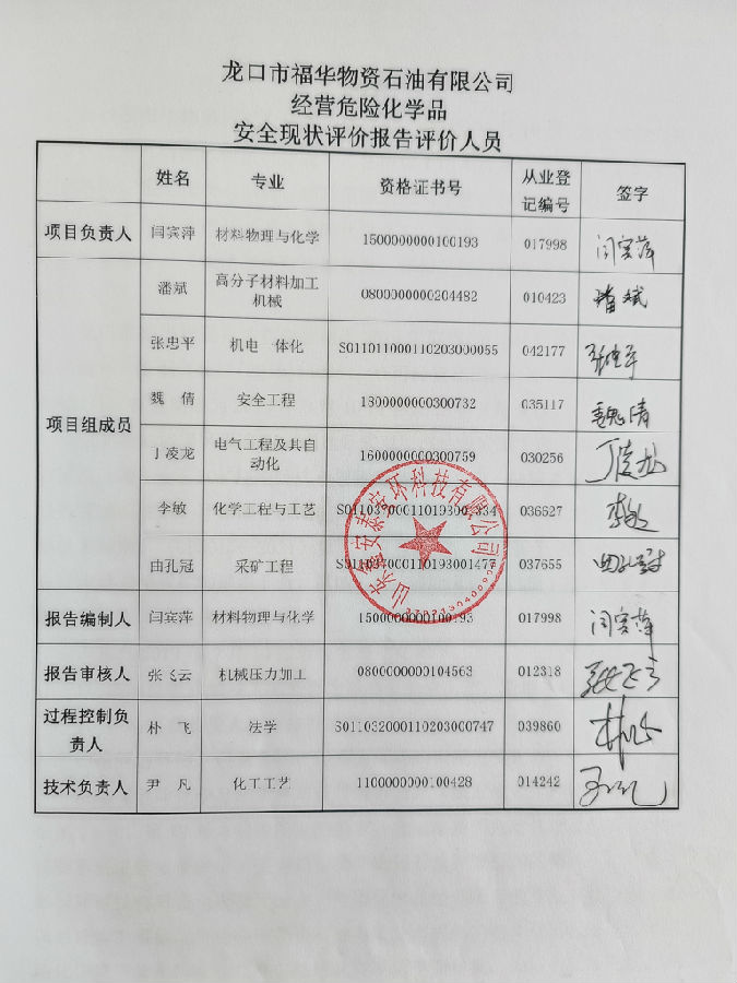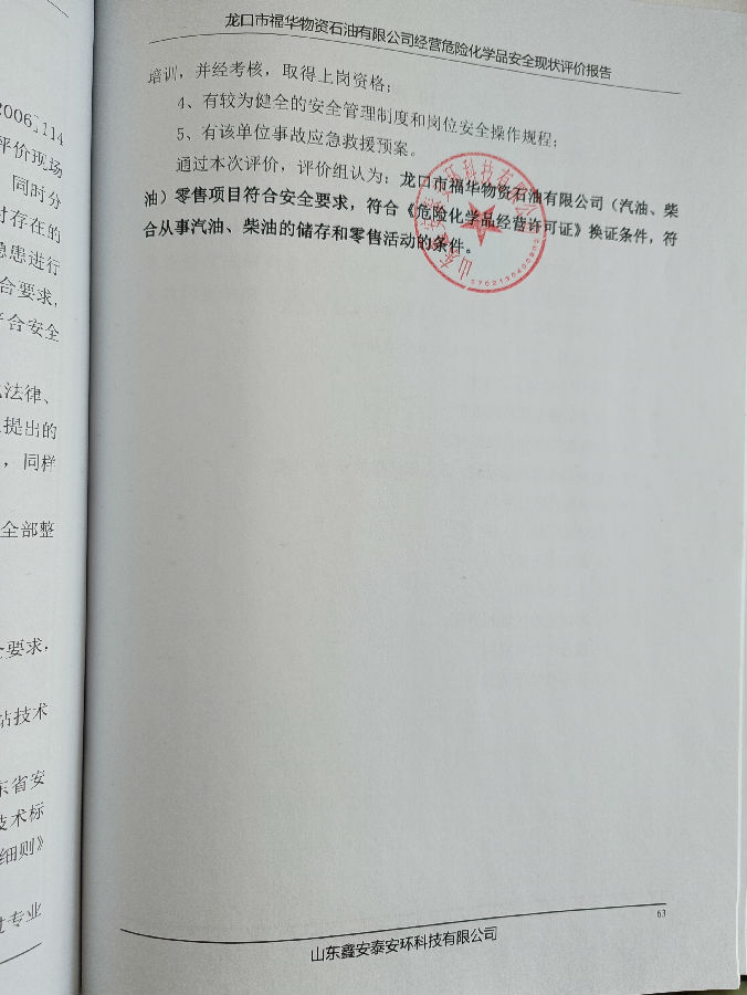 龙口市福华物资石油有限公司经营危险化学品安全评价报告