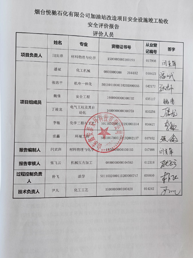 烟台悦驰石化有限公司加油站改造项目安全验收评价报告
