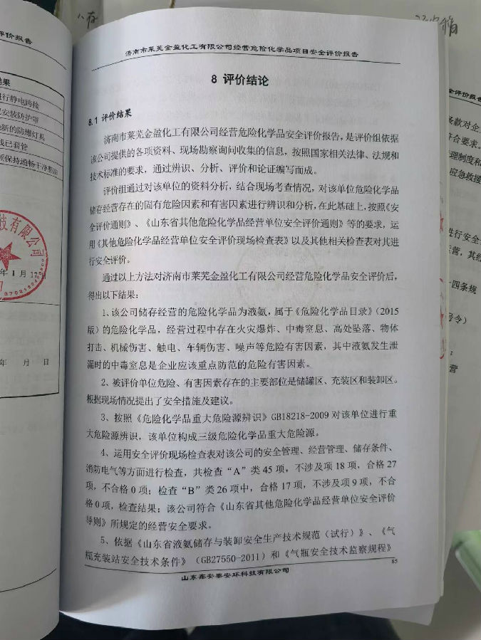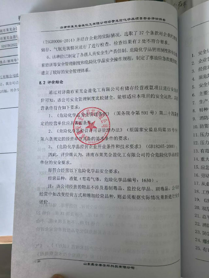 项目名称 | 济南市莱芜金盈化工有限公司经营危险化学品项目安全评价报告 | ||