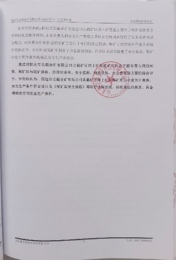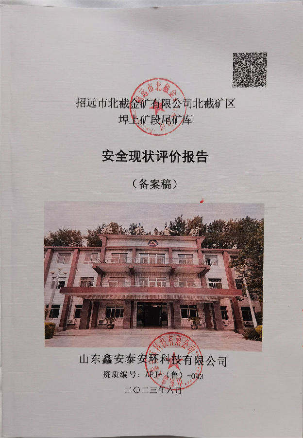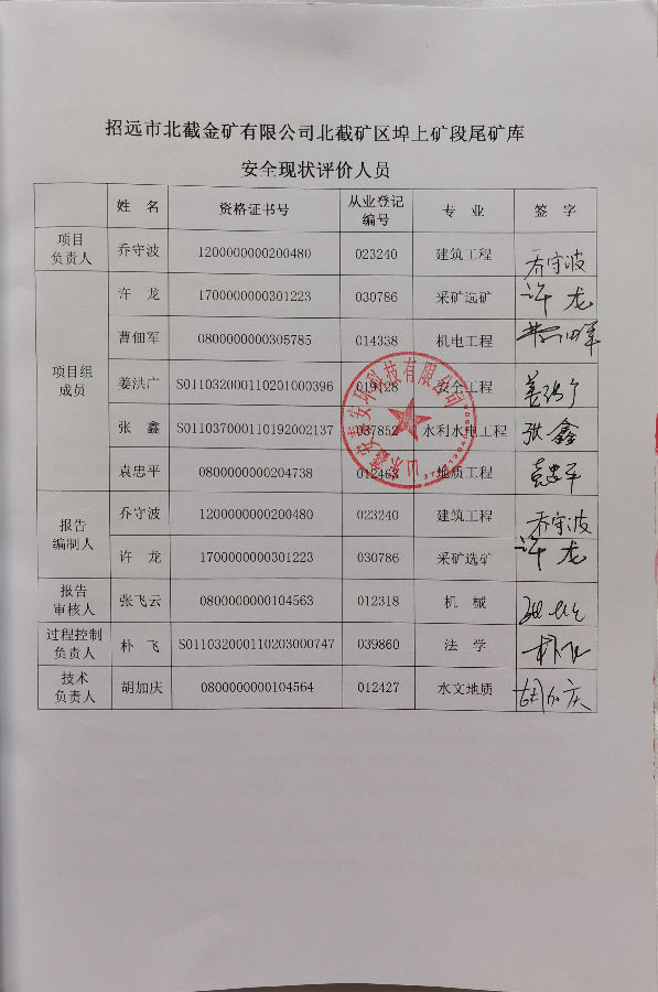 项目名称 | 招远市北截金矿有限公司北截矿区埠上矿段尾矿库安全现状评价 | ||