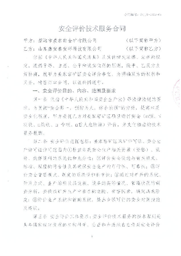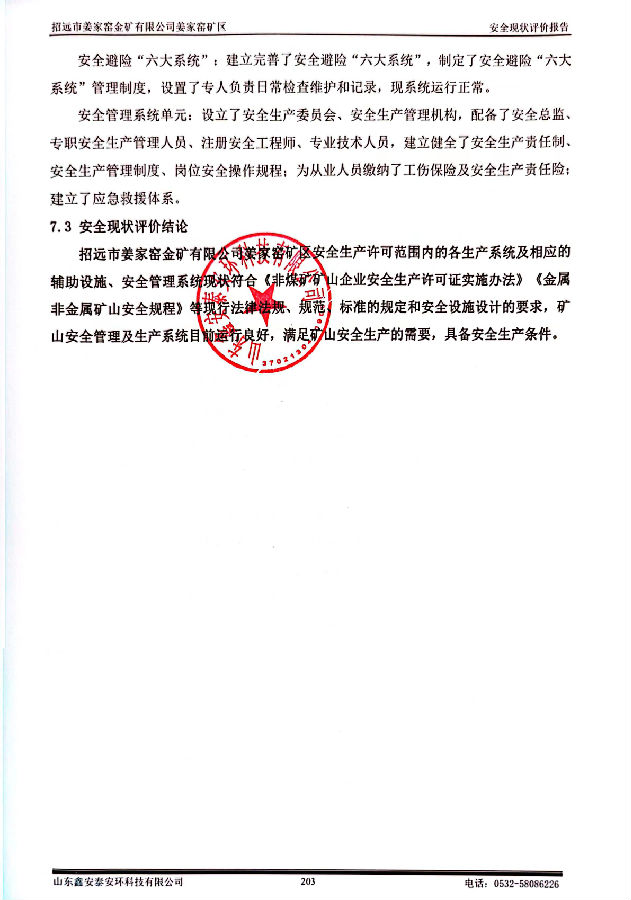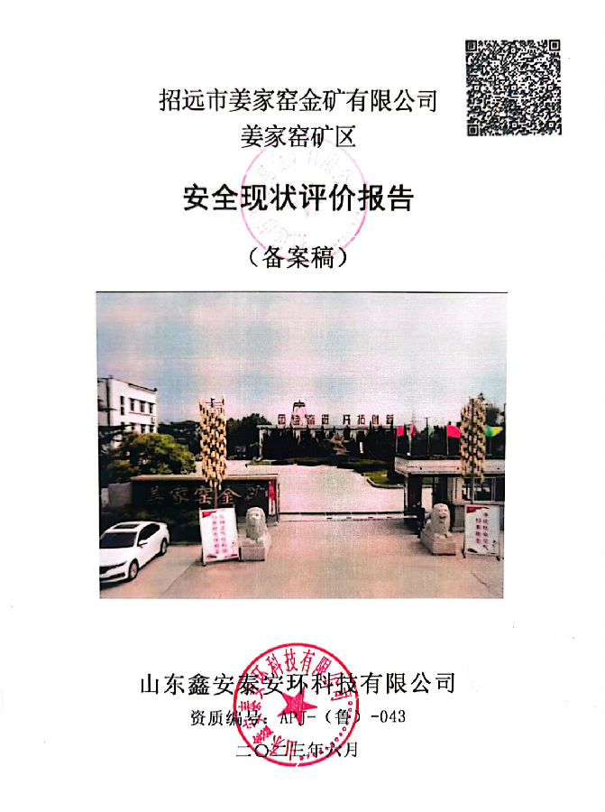项目名称 | 招远市姜家窑金矿有限公司姜家窑矿区安全现状评价 | ||