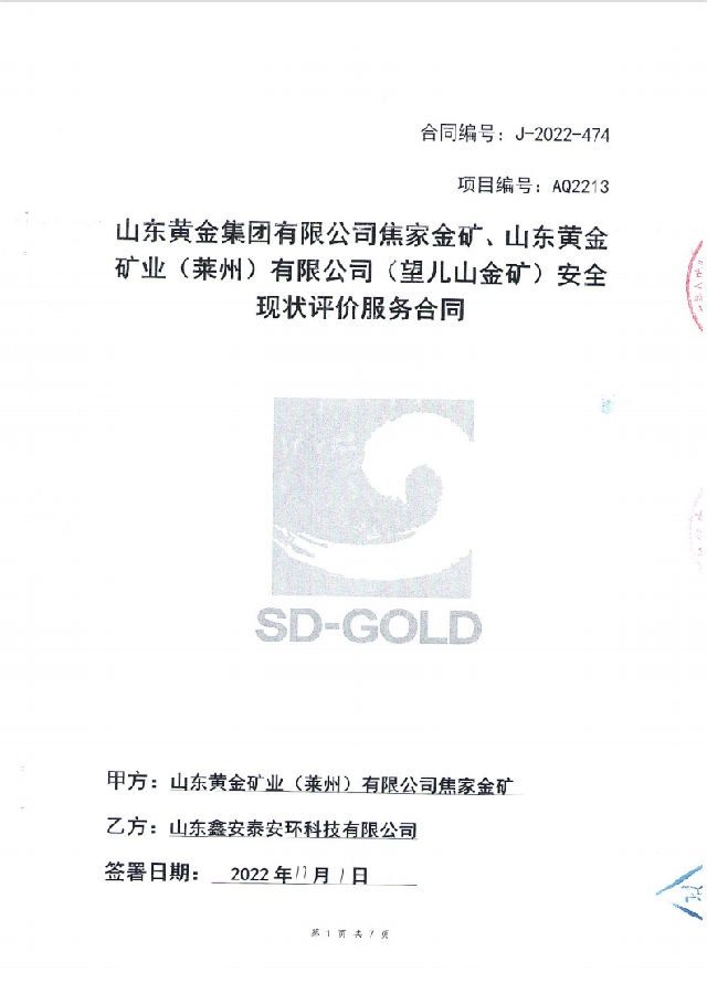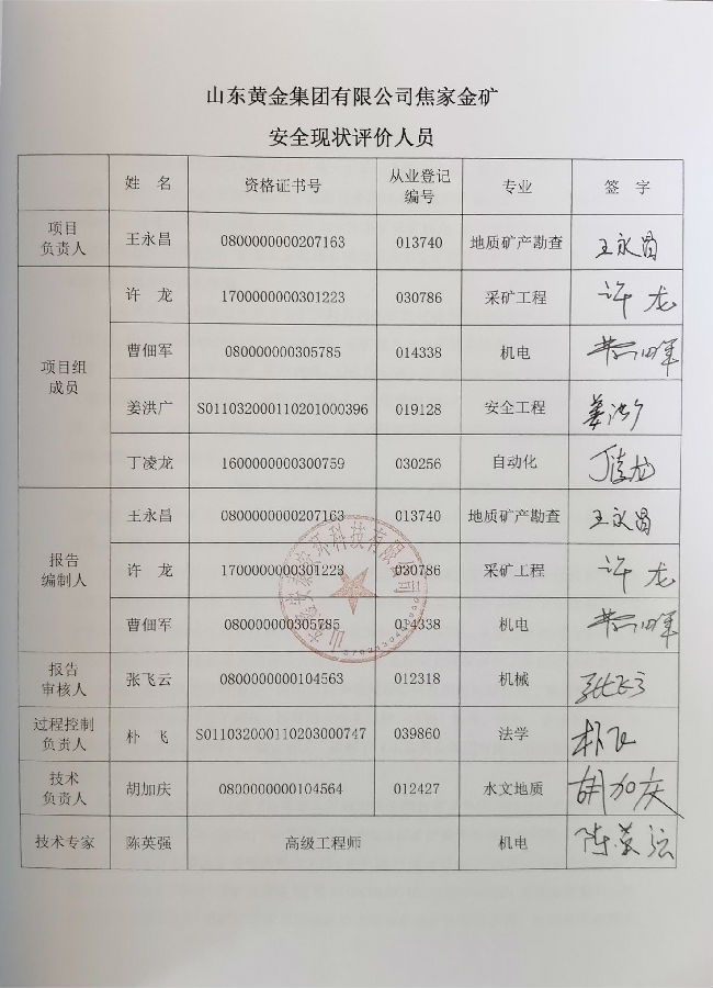 项目名称 | 山东黄金矿业(莱州)有限公司焦家金矿安全现状评价 | ||
