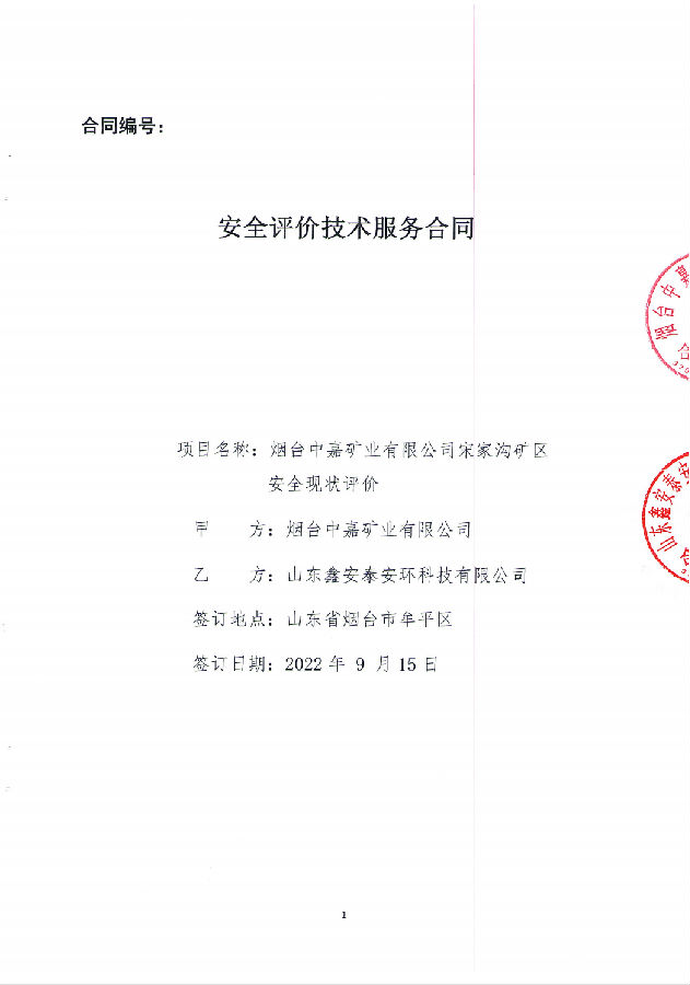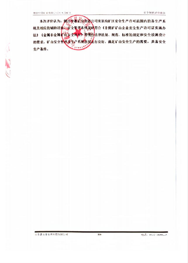 项目名称 | 烟台中嘉矿业有限公司宋家沟矿区安全现状评价报告 | ||