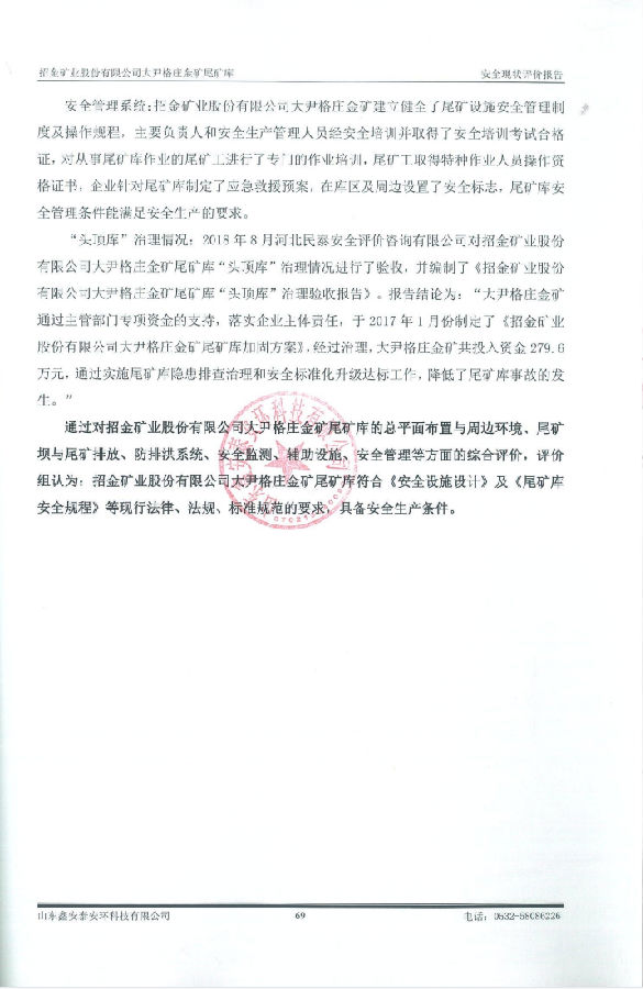 项目名称 | 招金矿业股份有限公司大尹格庄金矿尾矿库安全现状评价 | ||