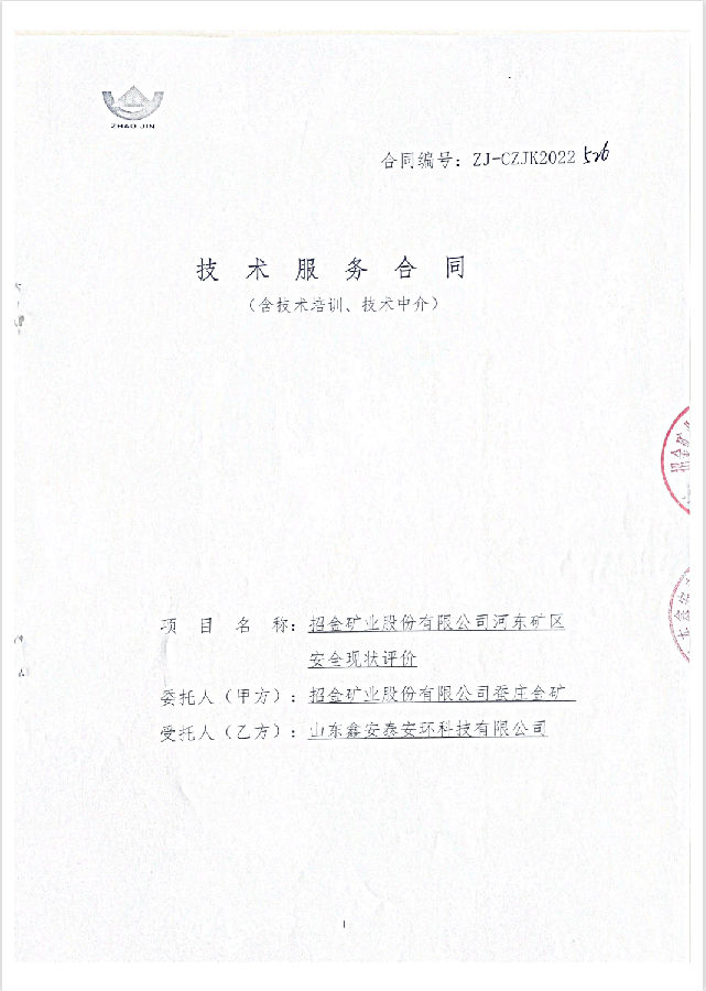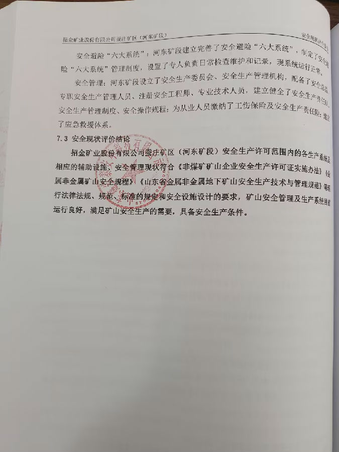 项目名称 | 招金矿业股份有限公司蚕庄矿区河东矿段安全现状评价 | ||