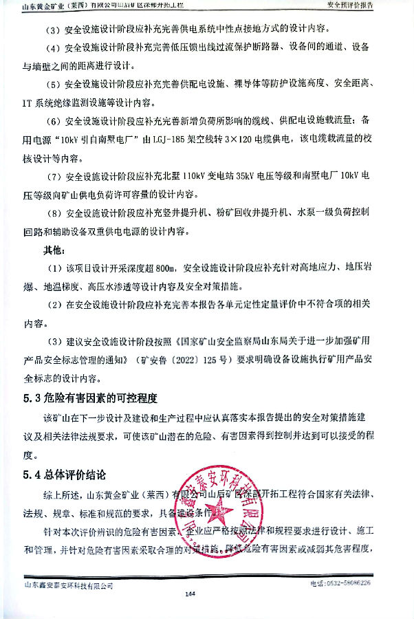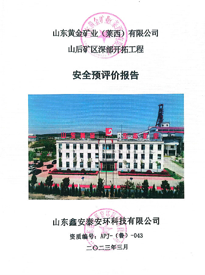 项目名称 | 山东黄金矿业(莱西)有限公司山后矿区深部开拓工程安全预评价 | ||