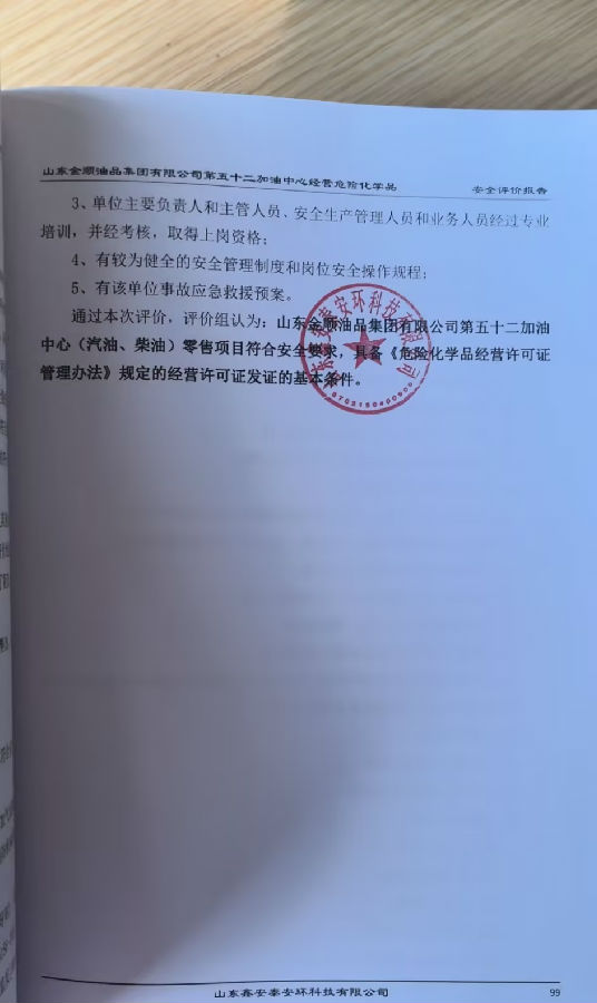 项目名称 | 山东金顺油品集团有限公司第五十二加油中心经营危险化学品 | ||