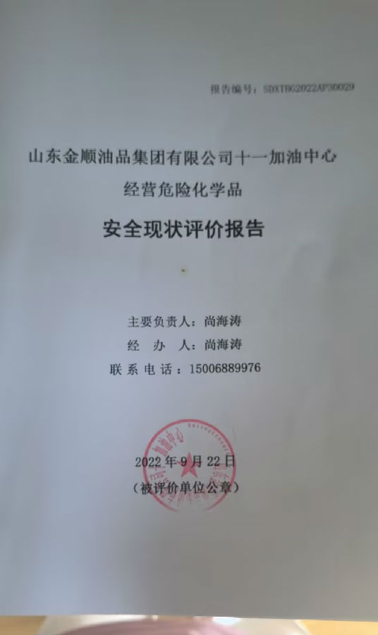项目名称 | 山东金顺油品集团有限公司十一加油中心经营危险化学品 | ||