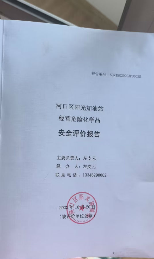项目名称 | 河口区阳光加油站经营危险化学品 | ||