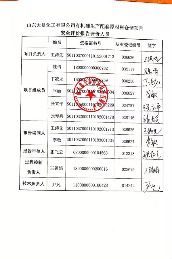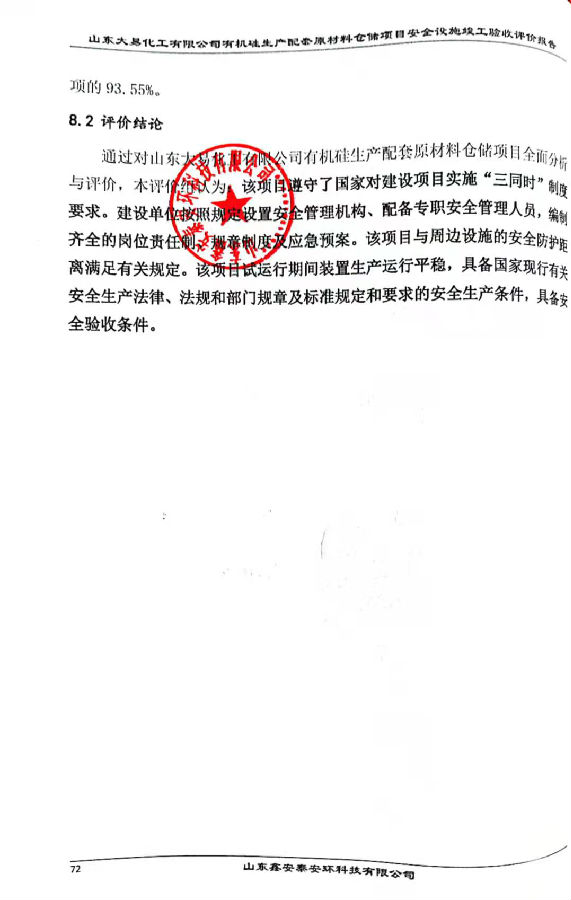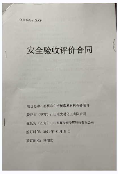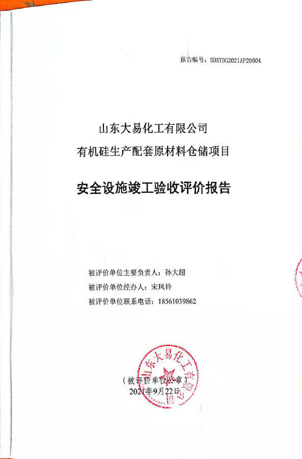 项目名称 | 山东大易化工有限公司有机硅生产配套原材料仓储项目安全设施竣工验收评价报告 | ||