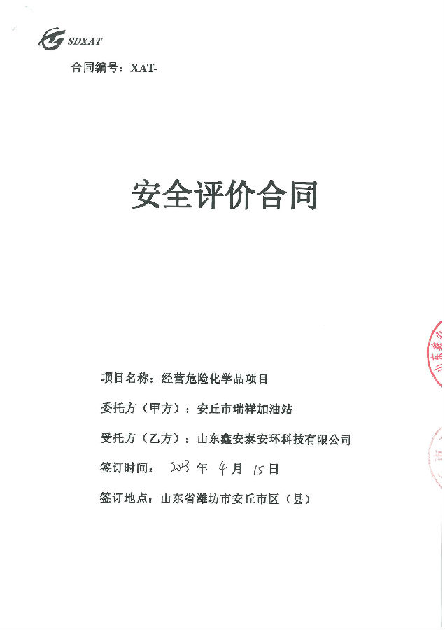 项目单位:安丘市瑞祥加油站 | |||
