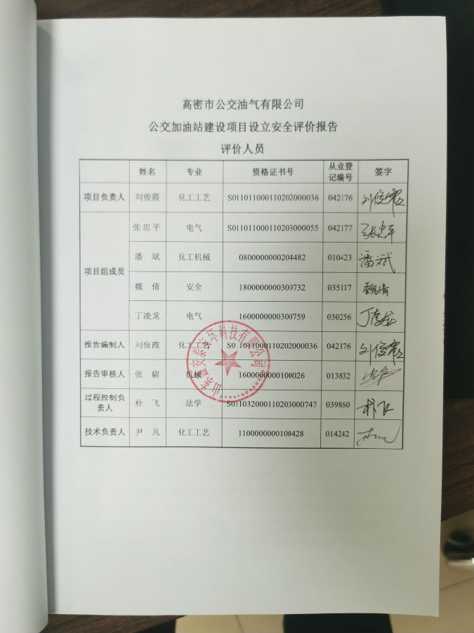 项目单位:高密市公交油气有限公司 法人代表:宋书瑶 | |||