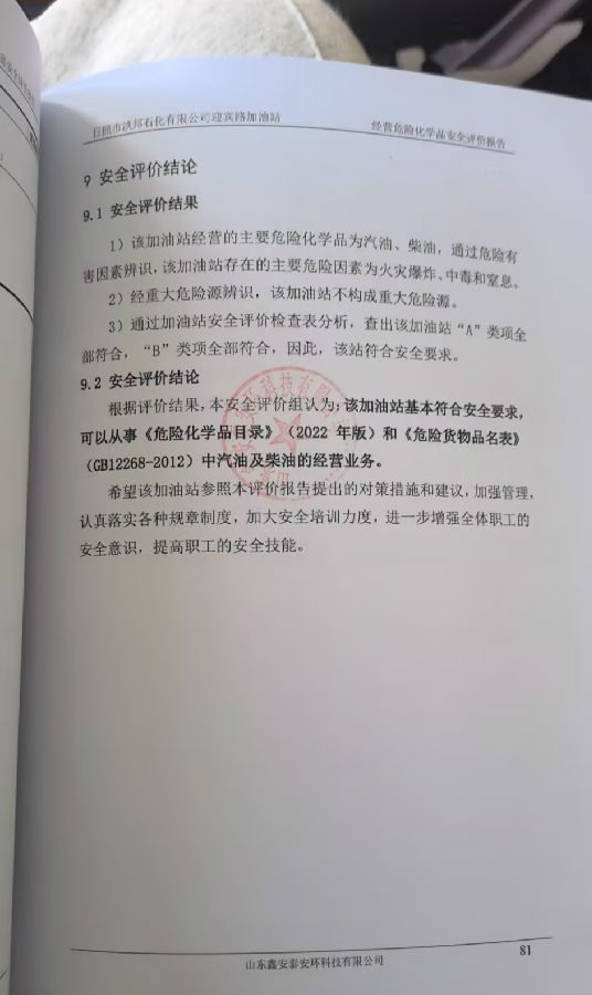 项目单位:日照市洪邦石化股份有限公司 该加油站于2021年12月13日取得了《危险化学品经营许可证》(证书编号为:鲁日危化经字[2020]000051号),有效期至2023年09月17日,需要换发危险化学品经营许可证,所以需要进行安全评价。 | |||