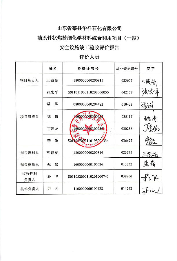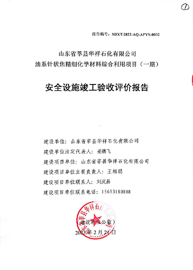 项目名称 | 山东省莘县华祥石化有限公司 油系针状焦精细化学材料综合利用项目(一期) | ||
