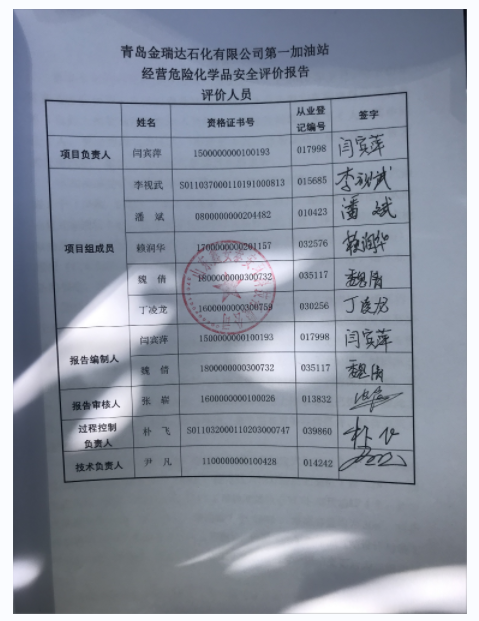 项目名称 | 青岛金瑞达石化有限公司第一加油站经营危险化学品安全评价报告 | ||