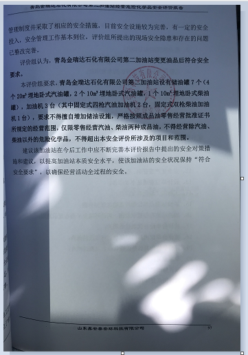 项目名称 | 青岛金瑞达石化有限公司第二加油站经营危险化学品安全评价报告 | ||