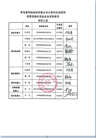 项目名称 | 青岛泰伟加油站有限公司王家河头加油站经营危险化学品安全评价报告 | ||