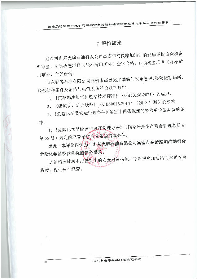 项目名称 | 山东壳牌石油有限公司高密市高诸路加油站经营危险化学品项目 | ||