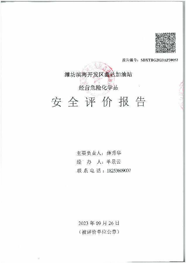 项目名称 | 潍坊滨海开发区鑫达加油站经营危险化学品项目 | ||