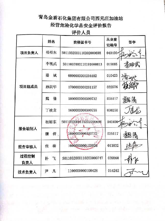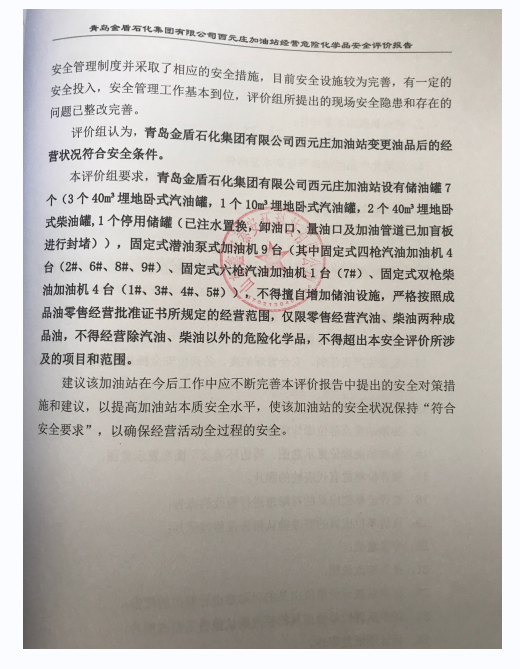 项目名称 | 青岛金盾石化集团有限公司西元庄加油站经营危险化学品安全评价报告 | ||