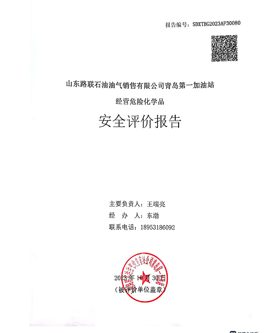 项目名称 | 山东路联石油油气销售有限公司青岛第一加油站经营危险化学品安全评价报告 | ||