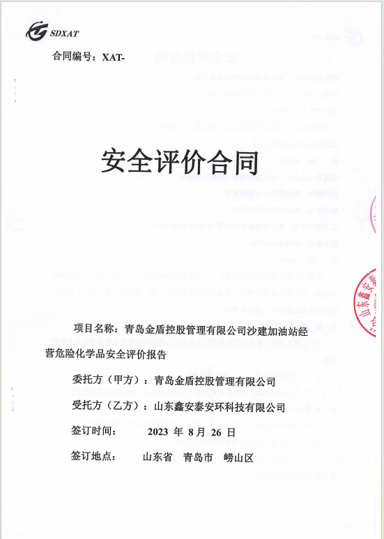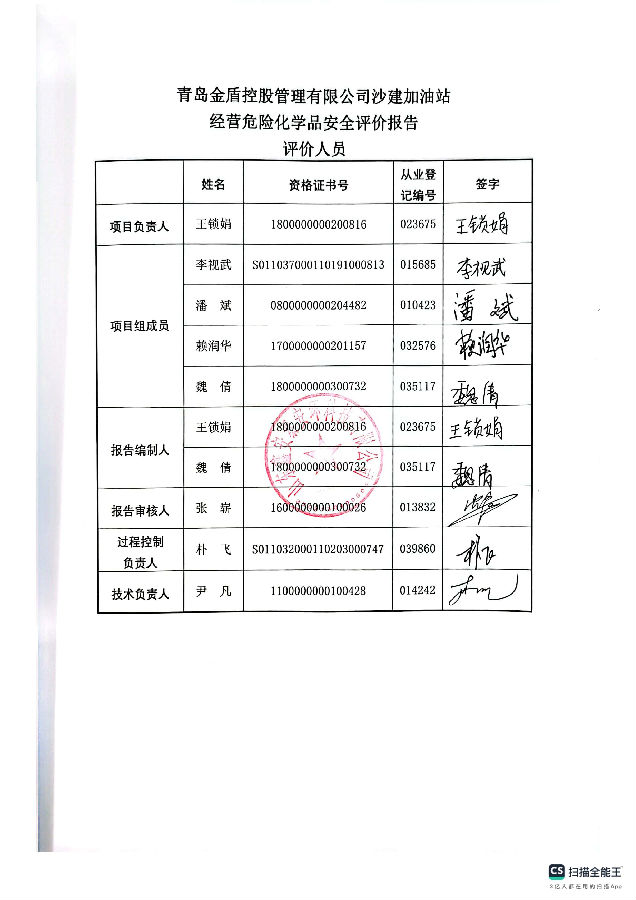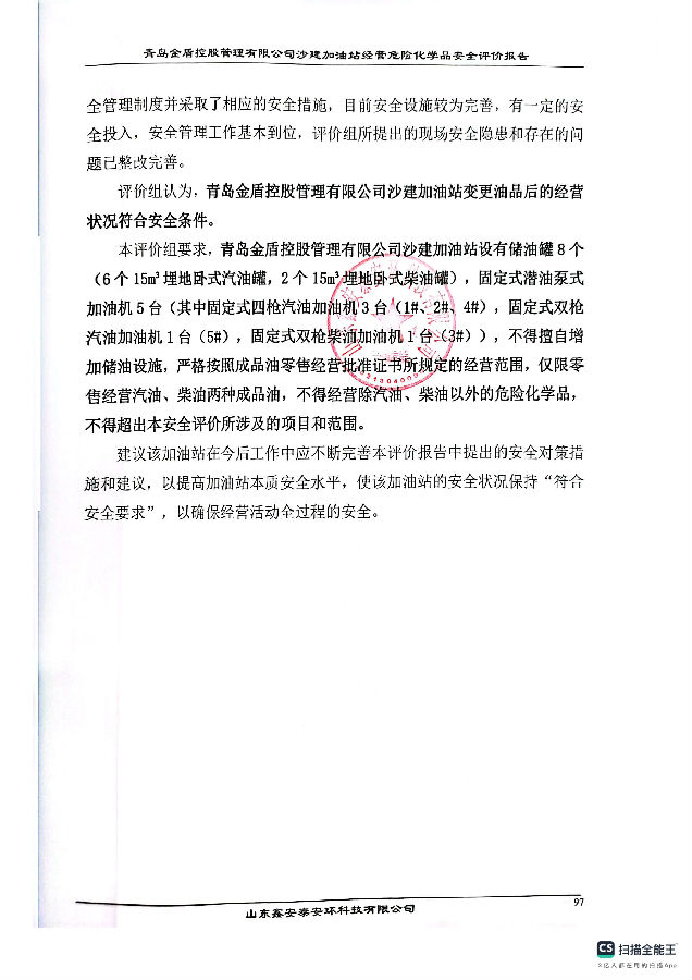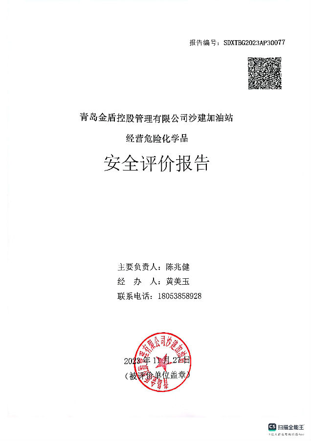 项目名称 | 青岛金盾控股管理有限公司沙建加油站经营危险化学品安全评价报告 | ||