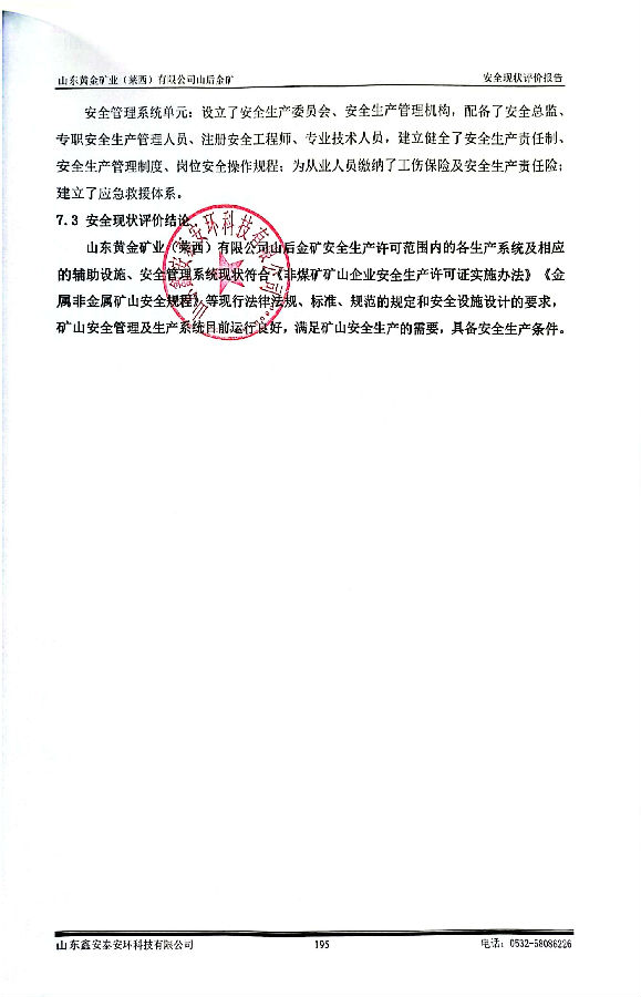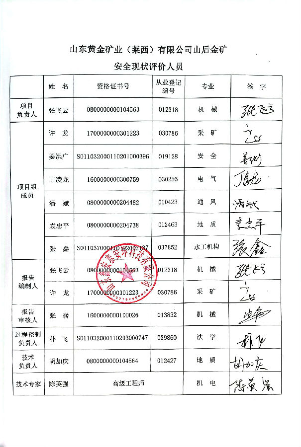 项目名称 | 山东黄金矿业(莱西)有限公司安全现状评价 | ||