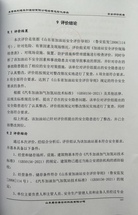 项目单位:东营胜利通海加油站有限公司 该加油站目前拥有双油品双枪加油机1台、双油品四枪加油机3台;油罐区目前拥有50m3埋地柴油罐2个,40m3埋地汽油罐2个,油品储罐总容积180m3,柴油折算成汽油后,计算储存油品能力折合为130m3,根据《汽车加油加气加氢站技术标准》(GB50156-2021)第3.0.9条规定,该加油站属于二级加油站。 该加油站于2023年3月30日重新取得了东营市应急管理局批复的《危险化学品经营许可证》(编号:鲁东危化经[2020]055020号),有效期至2023年12月30日,许可范围为汽油、柴油(汽油储罐2×40m3,柴油储罐2×50m3);该加油站于2022年6月30日取得了东营市商务局批复的《成品油零售经营批准证书》(编号:鲁油零售证书第3705023027号),有效期至2027年6月30日。 | |||