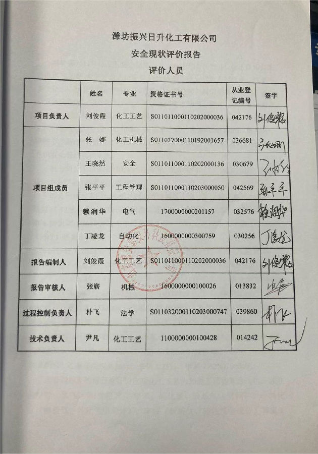 项目名称 | 潍坊振兴日升化工有限公司全厂在役生产装置安全现状评价 | ||