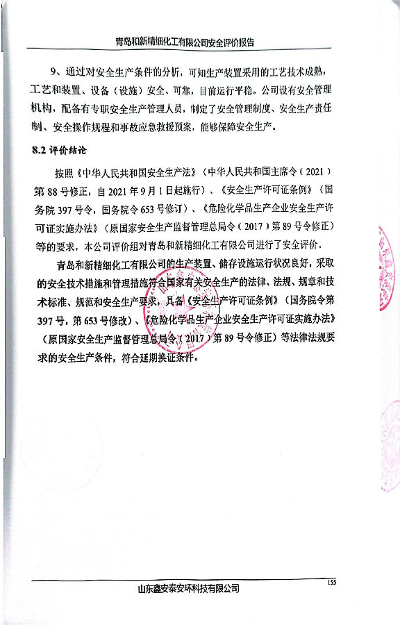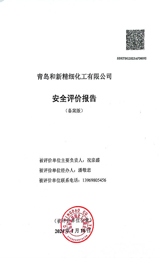 项目名称 | 青岛和新精细化工有限公司安全评价报告 | ||