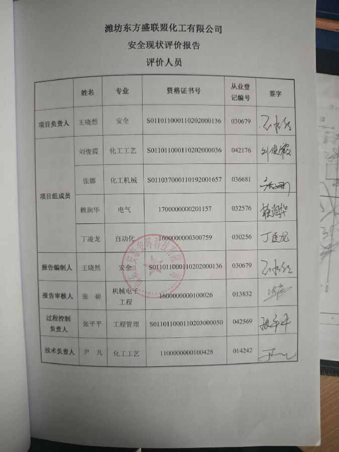 项目名称 | 潍坊东方盛联盟化工有限公司2万吨无污染锌盐搬迁改造升级装置安全现状评价 | ||