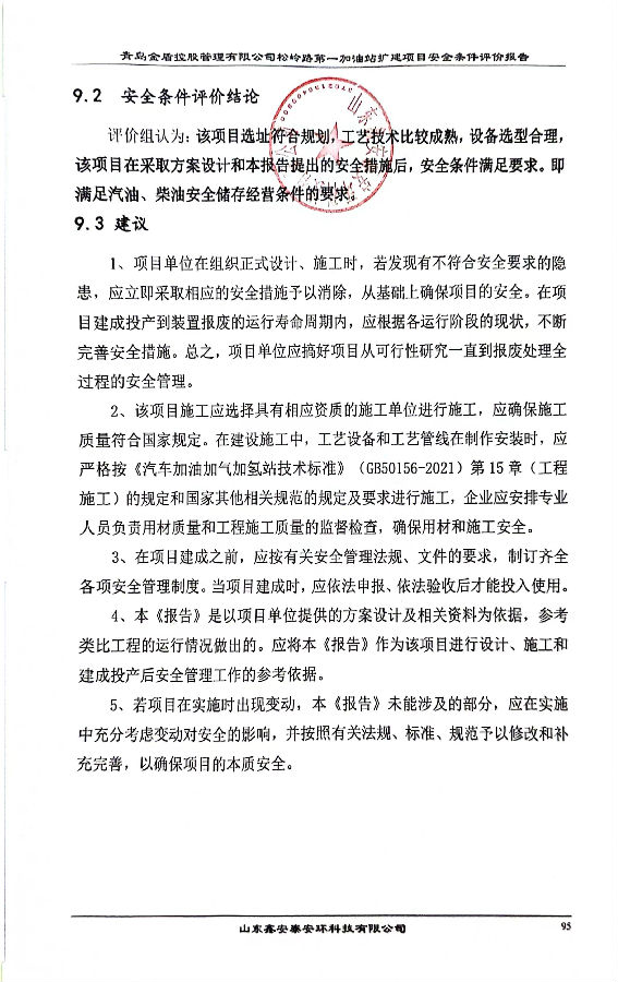 项目名称 | 青岛金盾控股管理有限公司松岭路第一加油站扩建项目安全条件评价报告 | ||