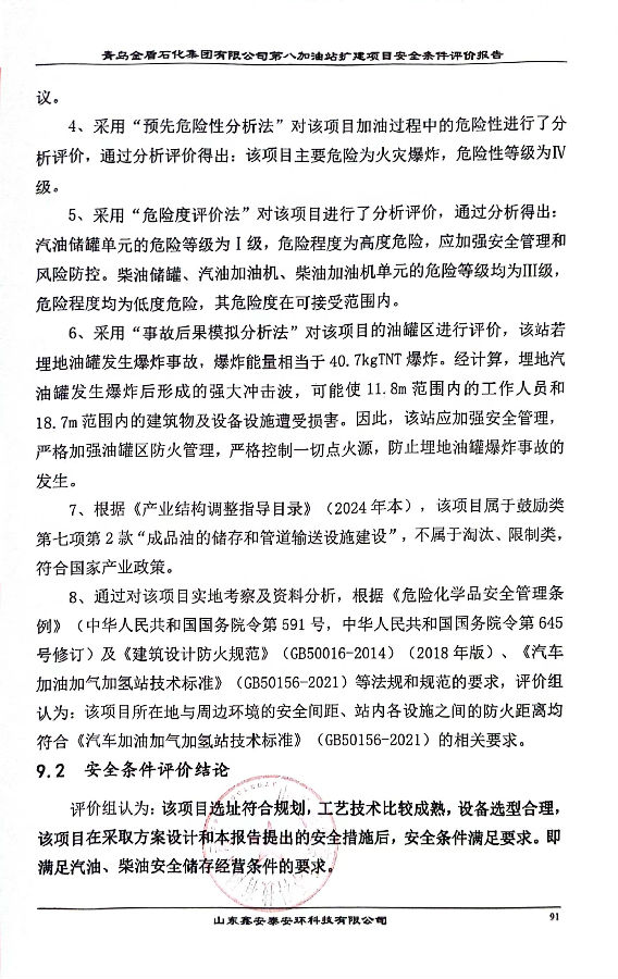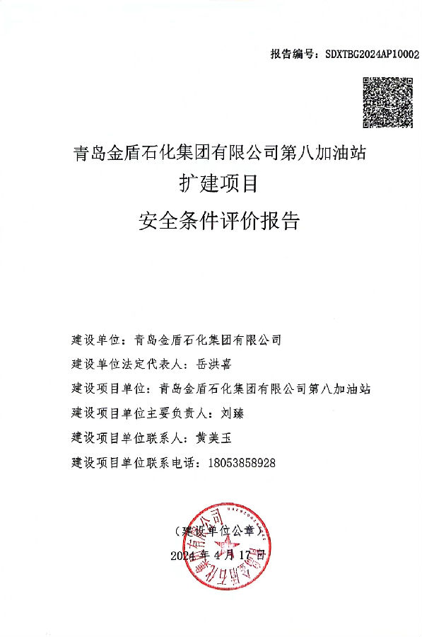 项目名称 | 青岛金盾石化集团有限公司第八加油站扩建项目安全条件评价报告 | ||