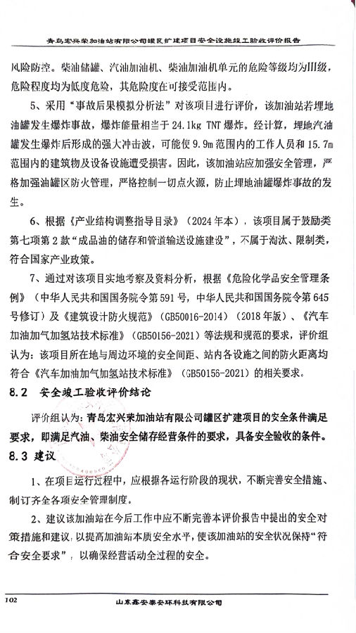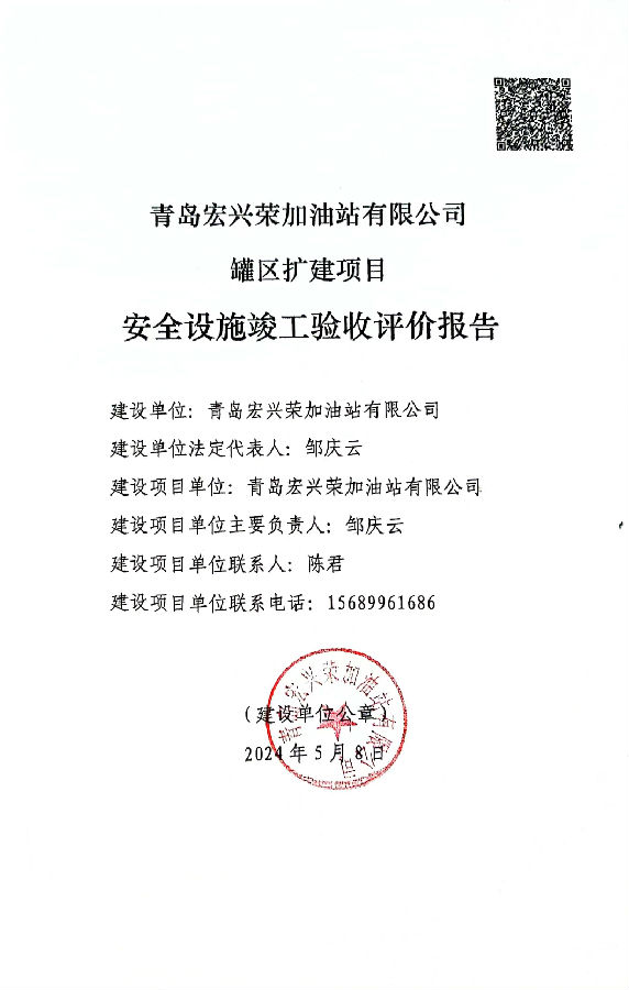 项目名称 | 青岛宏兴荣加油站有限公司罐区扩建项目安全设施竣工验收评价 | ||