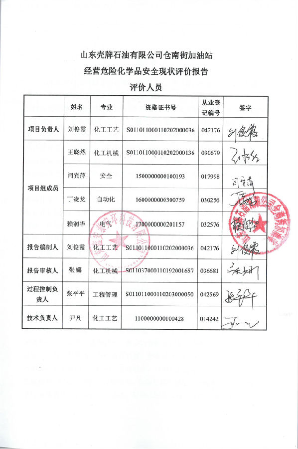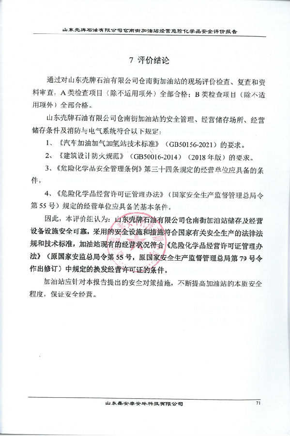 项目名称 | 山东壳牌石油有限公司仓南街加油站经营危险化学品安全现状评价 | ||