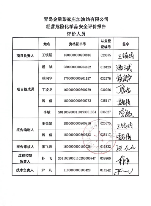 项目名称 | 青岛金盾彭家庄加油站有限公司经营危险化学品安全评价报告 | ||