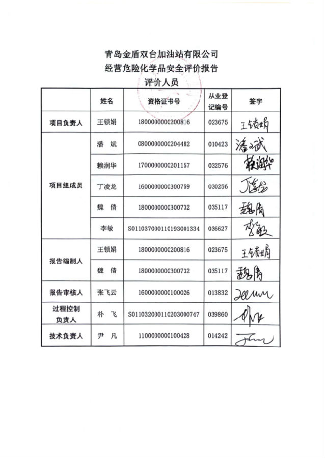 项目名称 | 青岛金盾双台加油站有限公司经营危险化学品安全评价报告 | ||