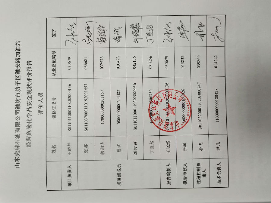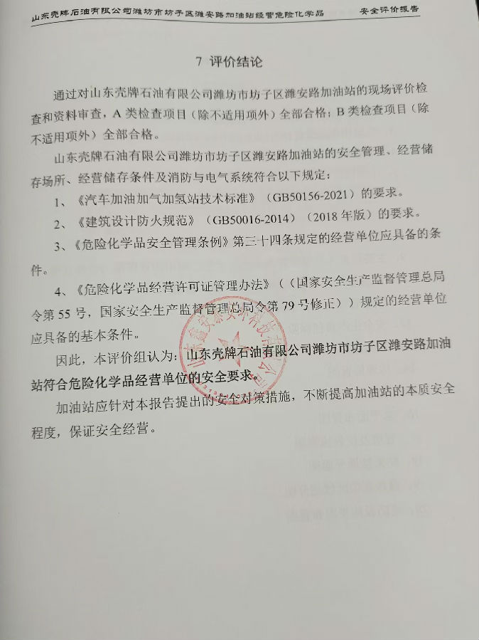 项目名称 | 山东壳牌石油有限公司潍坊市坊子区潍安路加油站经营危险化学品安全现状评价 | ||